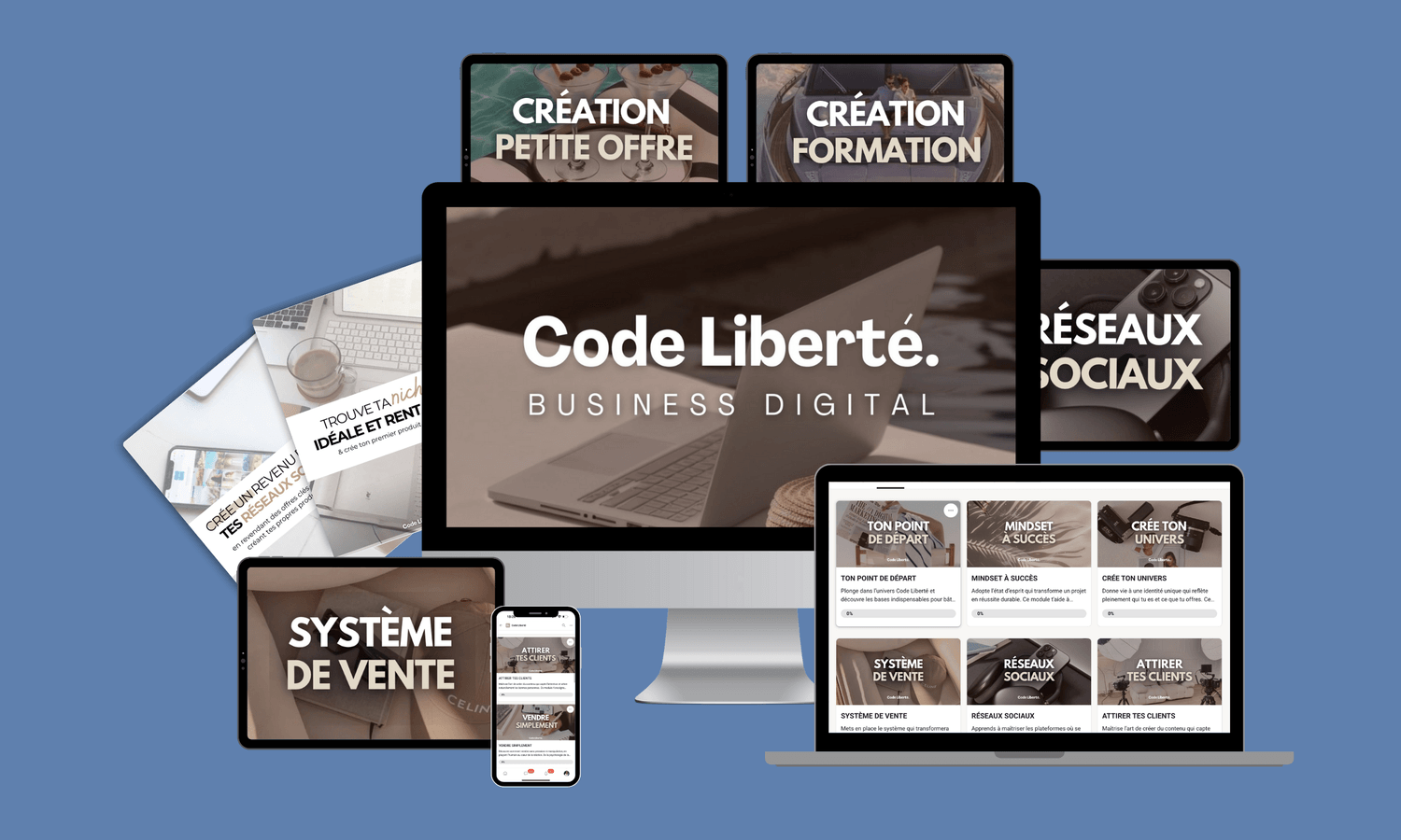 Aujourd’hui, j’ouvre un nouveau chapitre avec Code Liberté. Ma mission : aider un maximum de personnes à vivre du digital, que ce soit en revendant ou en créant leurs propres produits digitaux (ebooks, formations, coaching, etc.).